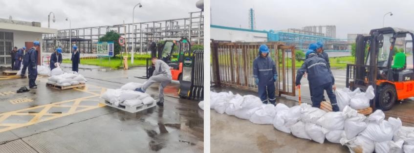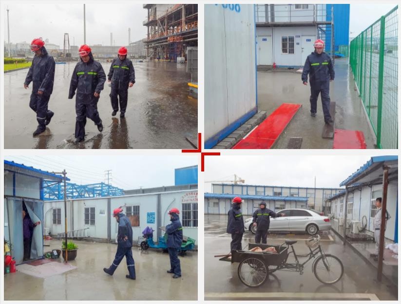 總裁帶隊(duì)對工廠生產(chǎn)裝置、生產(chǎn)綜合樓、臨建辦公室、施工現(xiàn)場及工人宿舍等地,檢查相關(guān)防臺措施落實(shí)情況。