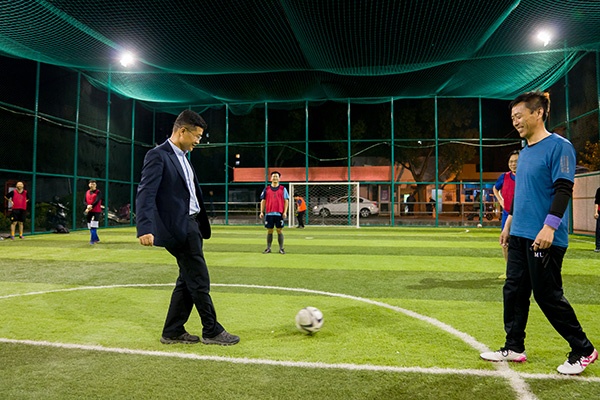 隨后,冠軍之爭(zhēng),烽火驟起。公司總裁張學(xué)琪來(lái)到現(xiàn)場(chǎng)為雙方運(yùn)動(dòng)員加油并為決賽開(kāi)球。丁基代表隊(duì)和原料代表隊(duì)實(shí)力相當(dāng),比賽開(kāi)始就進(jìn)入白熱化爭(zhēng)奪,原料隊(duì)利用默契的配合率先勁射得分,場(chǎng)上瞬間沸騰。上半場(chǎng)原料隊(duì)以1:0的優(yōu)勢(shì)領(lǐng)先。下半場(chǎng)易邊再戰(zhàn),期間丁基隊(duì)6號(hào)球員發(fā)起角球,利用對(duì)手失誤將比分扳平,并順利進(jìn)入加時(shí)賽。終場(chǎng),比分定格在了1:1,按照規(guī)則,雙方直接進(jìn)入了殘酷的點(diǎn)球大戰(zhàn)。