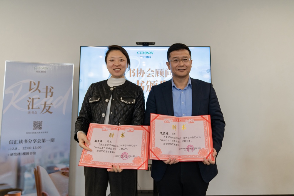 分享會(huì)上還對信匯圖書館2022年度閱讀達(dá)人頒發(fā)了證書,并聘請張總、胡總為讀書協(xié)會(huì)顧問。