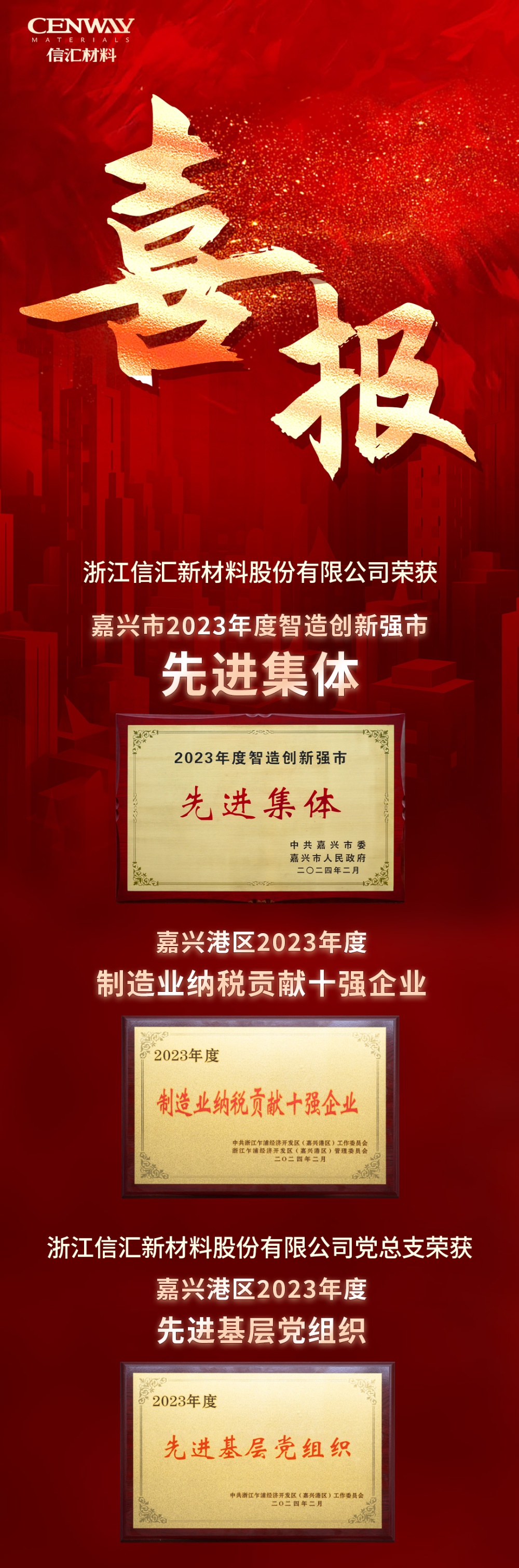 2月19日上午,嘉興召開全市三級干部大會,會上通報(bào)表彰了2023年度推進(jìn)智造創(chuàng)新強(qiáng)市先進(jìn)集體和先進(jìn)個(gè)人。當(dāng)天下午,浙江乍浦經(jīng)濟(jì)開發(fā)區(qū)(嘉興港區(qū))召開三級干部大會,會議對2023年港區(qū)各個(gè)條線涌現(xiàn)出的先進(jìn)集體和先進(jìn)個(gè)人進(jìn)行了通報(bào)表彰。在當(dāng)天市、區(qū)兩級會議上,浙江信匯新材料股份有限公司榮獲多項(xiàng)榮譽(yù)。 珍惜榮譽(yù),砥礪前行,浙江信匯將堅(jiān)持“客戶價(jià)值驅(qū)動,應(yīng)用場景支撐”的創(chuàng)新理念,不斷開拓進(jìn)取,在創(chuàng)新中擘畫新藍(lán)圖,取得新突破,譜寫新篇章。