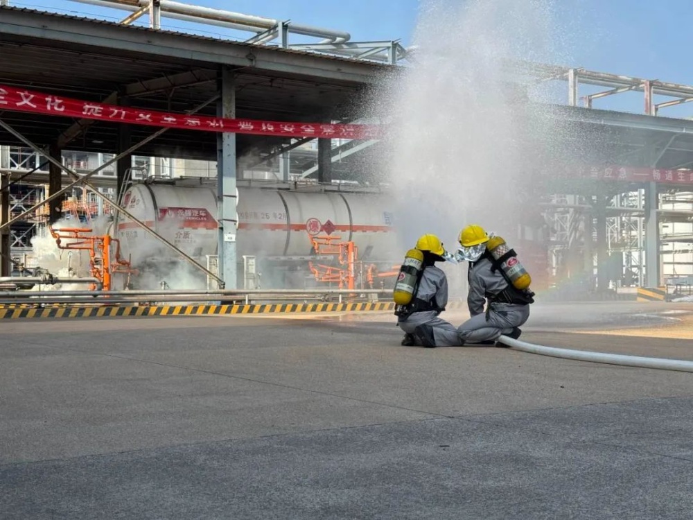 | 為健全企業(yè)與政府聯動以及各部門協同應急救援機制,檢驗各部門應對化工園區(qū)?;肥鹿实膽碧幹媚芰?,10月23日下午,2024年嘉興港區(qū)危險化學品事故應急救援演練暨浙江信匯氯甲烷泄漏事故應急救援演練在公司舉行。  氯甲烷是一種無色、具有醚樣微甜的有毒氣味,對人體健康有刺激和麻醉作用,同時亦具有易燃易爆性,與空氣混合能形成爆炸性混合物,遇火花或高熱能引起爆炸,并生成劇毒的光氣。本次演練采用綜合實戰(zhàn)演練方式進行,模擬浙江信匯在生產經營活動中發(fā)生氯甲烷泄漏事故。“班長,班長,氯甲烷卸車時,液相鶴管發(fā)生脫位,有大量氯甲烷泄漏!”“立即按照預案啟動公司一級應急響應。馬上通知公司各應急小組趕赴現場展開應急處置?!薄?/span>事故發(fā)生后,公司迅速啟動應急預案,組織各部門相關人員開展事故的先期處置工作,并第一時間向港區(qū)應急響應中心報警,請示支援。港區(qū)應急響應中心接到報警后,立即啟動Ⅳ級應急響應,協同公安、消防、醫(yī)療、環(huán)保等相關部門開展救援。與應急響應中心合署辦公的港區(qū)消防救援大隊,第一時間得到信息后,立即出警趕往事故現場救援處置,在泄漏點周圍采用水幕帶、霧化水槍稀釋空氣中揮發(fā)出的可燃氣體的濃度,筑起一道道立體的全方位的水霧墻,以隔斷、吸附、稀釋和減少有害氣體飄向下風向。平湖二院派出的急救車輛很快也到達企業(yè)外圍,并快速在現場建立臨時救治點,隨后將兩位“患者”轉運至救護車內,迅速開往醫(yī)院繼續(xù)救治。本次演練過程中,事故險情報告及時、應急救援隊伍響應迅速,各單位各司其職、規(guī)范操作、科學高效地開展救援工作,經過近25分鐘緊張有序的聯動配合,?;沸孤╇U情得到成功處置,演練圓滿完成。本次演練不僅全面檢驗了應急預案的實用性和可操作性,也極大提升了多部門聯合救援及應對突發(fā)事件的協調配合和處置能力。公司將在港區(qū)應急響應中心指導下,緊盯危險化學品事故災害特點,突出“以演促練、以練筑防”,進一步完善和優(yōu)化應急處置流程,不斷提高應對?;肥鹿实木C合救援能力,全力筑牢?;奉I域安全生產防線。 |