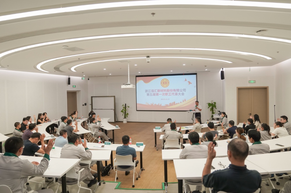 近日,浙江信匯新材料股份有限公司召開了第五屆第一次職工代表大會和工會第五屆第一次會員代表大會,順利完成了工會委員會換屆選舉工作。公司總裁姜森,第五屆工會領(lǐng)導(dǎo)小組以及職工代表共60余人參加會議,港區(qū)總工會常務(wù)副主席趙菊明出席會議。